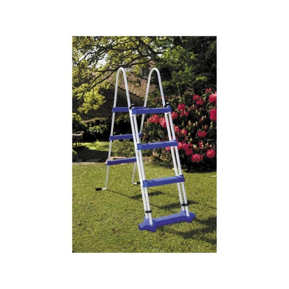 Escada: Escada de segurança com plataforma. É de aço galvanizado e lacado em cor branco, plataforma superior e com frontal extraível.